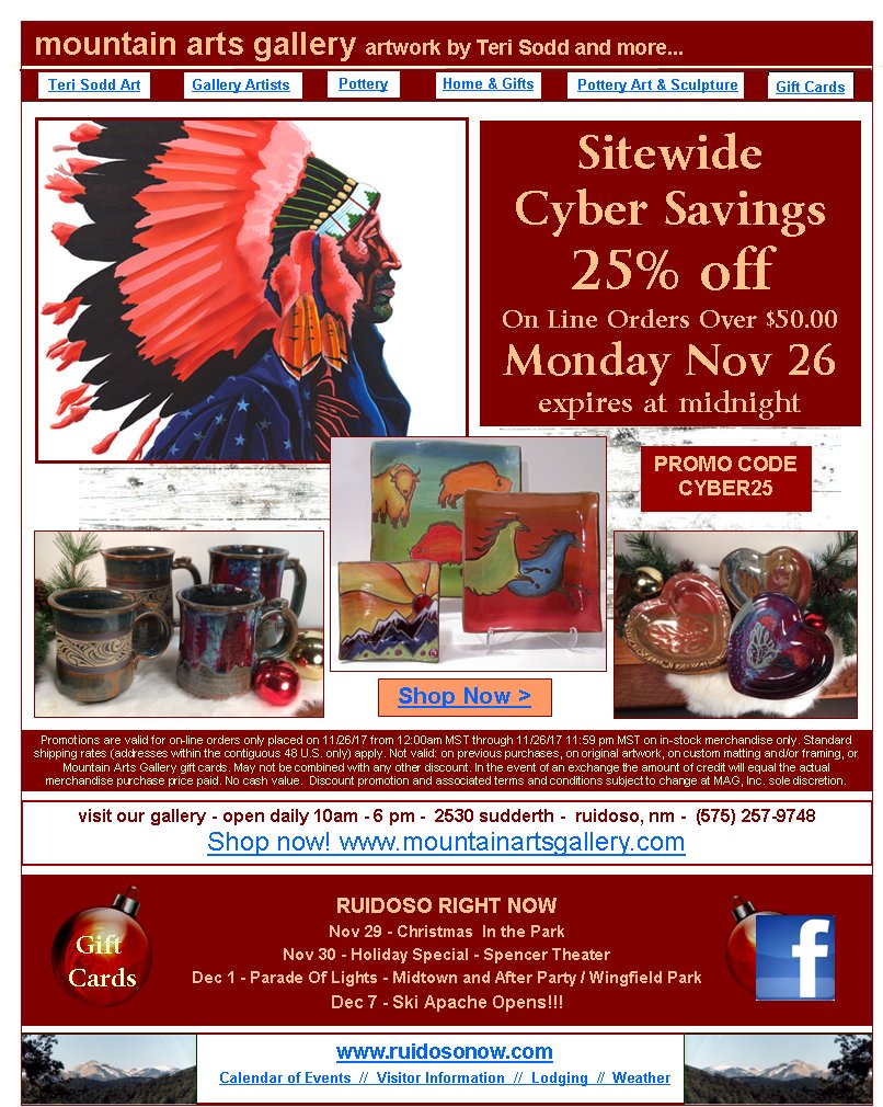 now! www.mountainartsgallery.comPROMO CODECYBER25 GiftCards#Sitewide Cyber