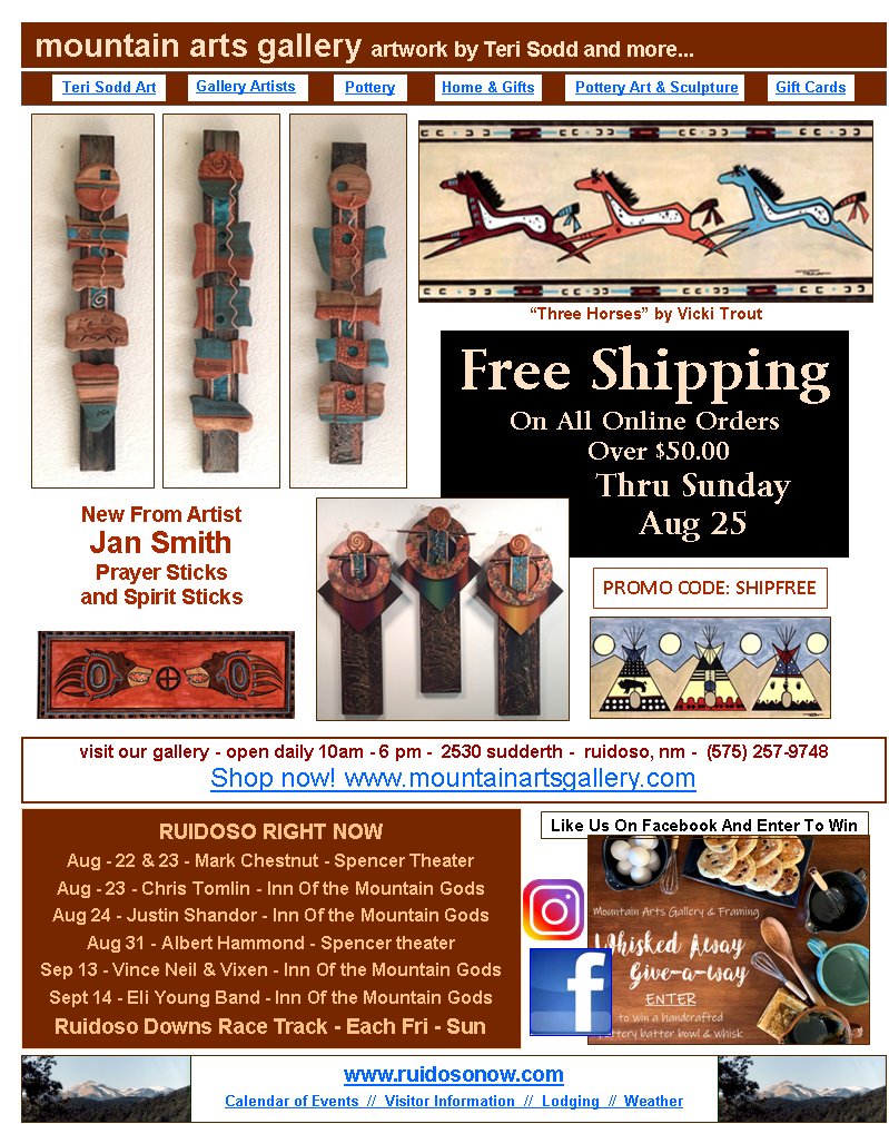 - (575) 257-9748Shop now! www.mountainartsgallery.comPROMO CODE: