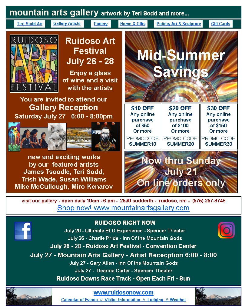 Ruidoso Art Festival - Convention CenterJuly 27 - Mountain Arts Gallery -