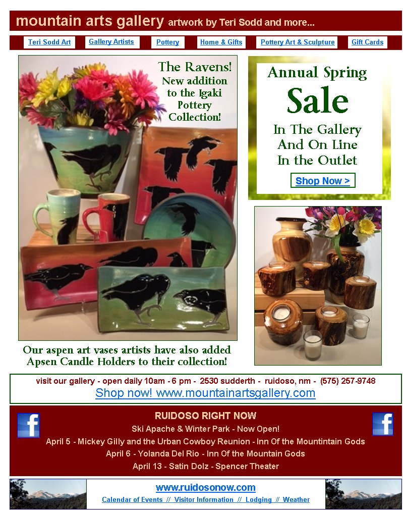 ruidoso, nm - (575) 257-9748Shop now! www.mountainartsgallery.comAnnual