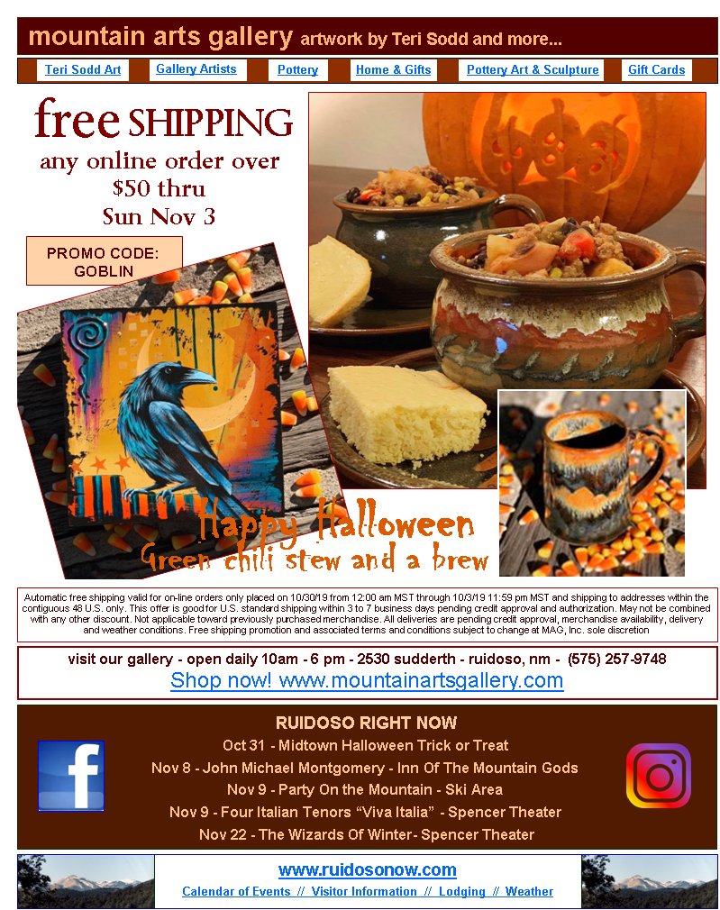 www.mountainartsgallery.comSHIPPINGPROMO CODE: GOBLIN Happy HalloweenGreen