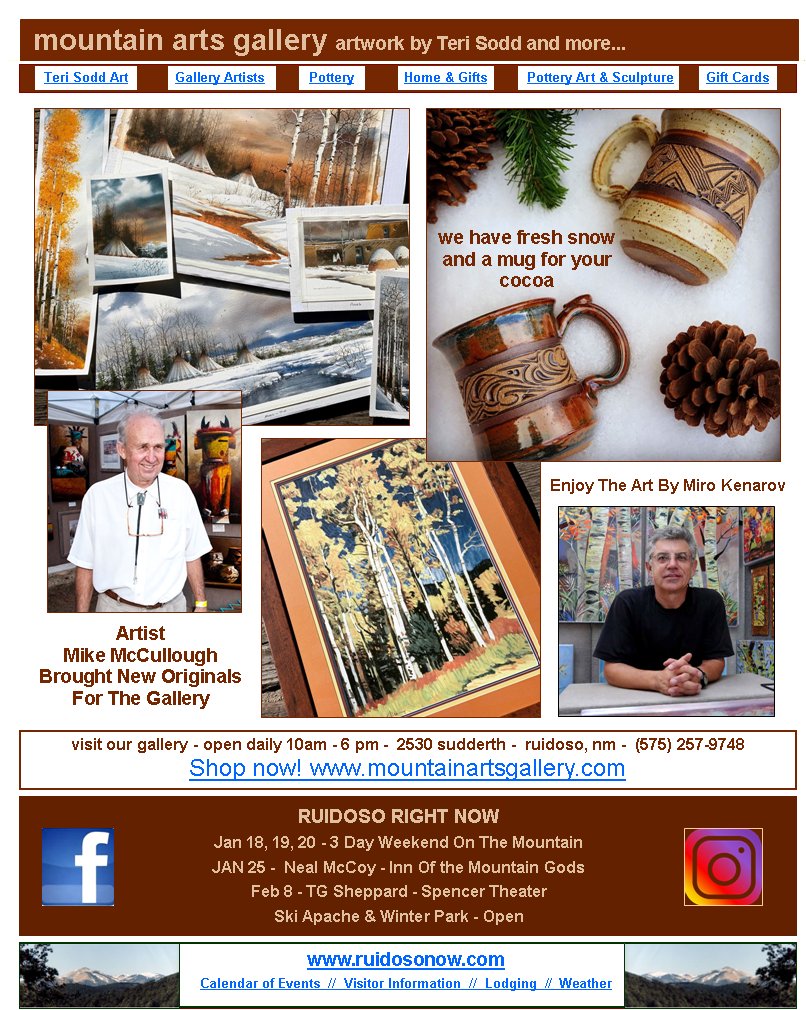 Art & SculptureGift CardsRUIDOSO RIGHT NOWJan 18, 19, 20 - 3 Day Weekend On