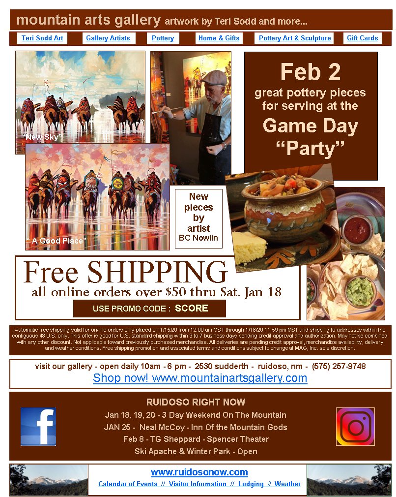Art & SculptureGift CardsRUIDOSO RIGHT NOWJan 18, 19, 20 - 3 Day Weekend On