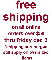 Free shipping valid for on-line website orders only placed on 12/1/21 from
