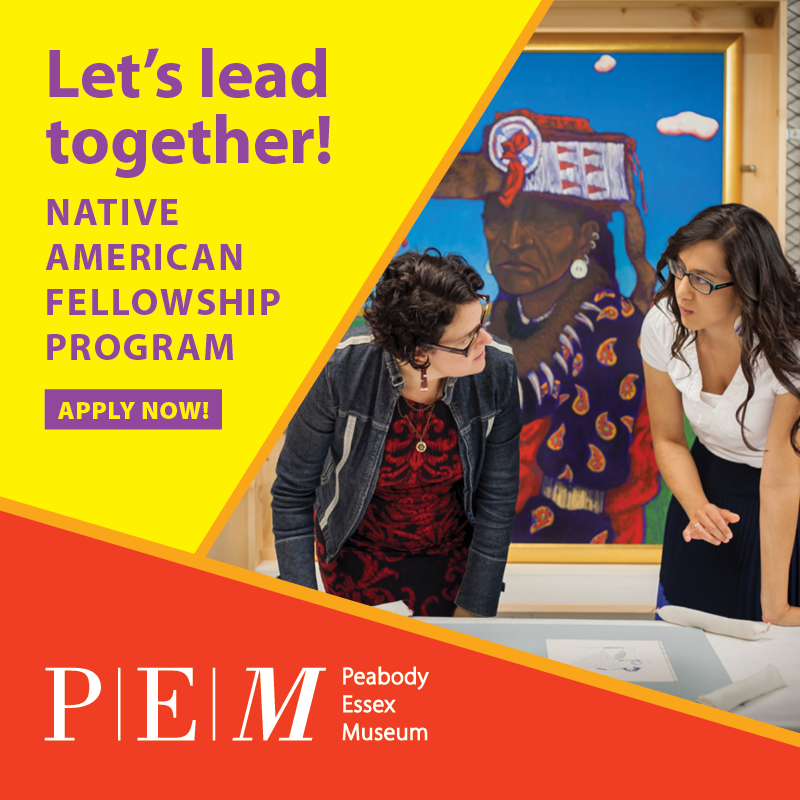 I am sending on behalf the Peabody Essex Museum’s Native American Fellowship Program. Applications are due next Friday, November 15th. I was a PEM Fellow, Summer 2011 in Museum Education. It was an extraordinary and rewarding experience that significantly impacted my library/museum career. I highly recommend this program. NOTE: There is a separate Library Fellowship position now! Please contact Jen Himmelreich should you want more specific information. Thanks!