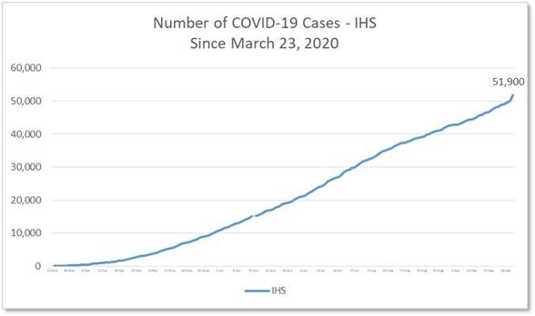 * NCAI COVID-19 Data Situation Summary - IHS Area Data <http://r20.rs6.net/tn.jsp?f=001qYiglgYMUkZTj9fsABXBeowgWEfaFEzDQwNMM-eDgaDSvp6H47zwz7PhA5a3dCYh3z6PviMdsYkYfqhrXEN7ZHUtquKnvb4Zc4bYkOuDgmlfFUqmamSjb-vtcLuvB1Uueo-4VGg_tjTwBc40f3ZfpA0_J3SQOhmDLOXsLdk1ct47KTKv57xgZx5aCAtk_g115k1EpKE2rZ09kQYo94YWsEQSIYU_7a131udoASiNSmXxgWQ0TgOMGhxHC2ZDC0mfiS2pAH3kQL5SmaIprzhe1J9LuNSMUgXvwy_Rf2zdI4iiFCrDAQjRmw==&c=jYWhqDcYm5Udh4gFENasN7Xdi7a6owcR2Tg-j1WQw2fiPV9T22EJqQ==&ch=kBV46rYNCDm600dppIbP112FhL_PgYOpYmNr2KrCxQ8-XcQ9MUw7_Q==> (October 1, 2020)