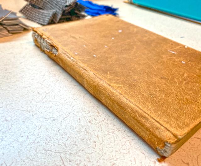 Photo Middle: A leatherbound book from 1861 was donated from a private collection for testing. (Photo courtesy of Battelle.)