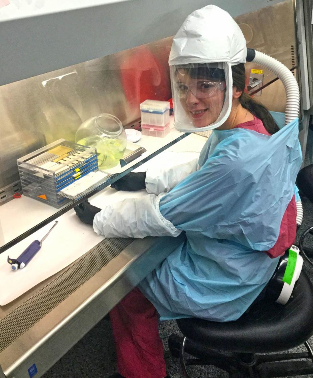 Photo Top-right: Megan Fulton, a Senior Technician at Battelle, works on Test 6 material processing. (Photo courtesy of Battelle.)