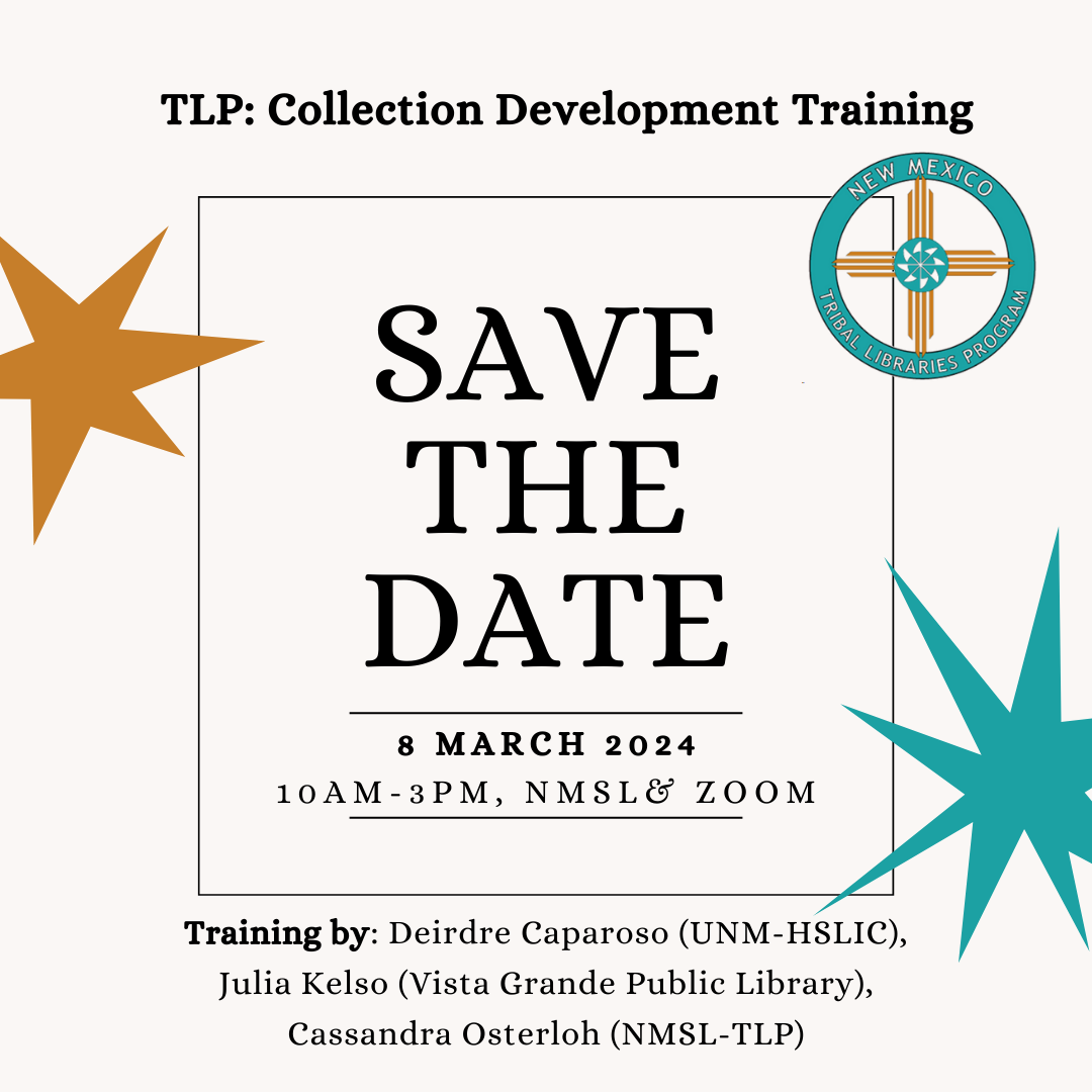 [Nmtriblibs] TLP: Save the Date - Collection Development Training - March 8