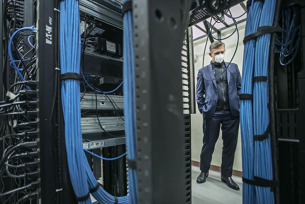 Sen. Martin Heinrich gets a tour of the server room at the Santa Fe Indian School during a visit January 17th to discuss internet access for Native youth.