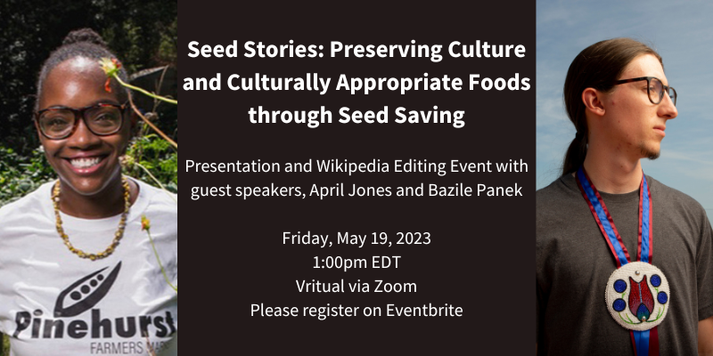 Please register<https://www.eventbrite.com/e/seed-stories-preserving-culture-and-culturally-appropriate-foods-tickets-625417349127> on Eventbrite where a full schedule and speaker bios can be found. The confirmation email will include the Zoom link and password to access the event. Full-event attendance is not required. For more information about the event, and to see what we will be editing, please visit the Wikipedia page<https://en.wikipedia.org/wiki/Wikipedia:WikiProject/NAL/Seed_Stories>