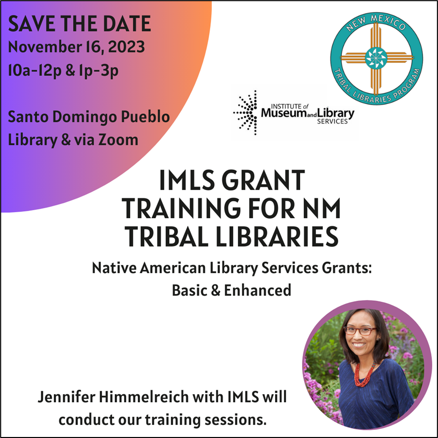 [Nmtriblibs] TLP-IMLS Grant Training for NM Tribal Libraries - Save the Date - November 16
