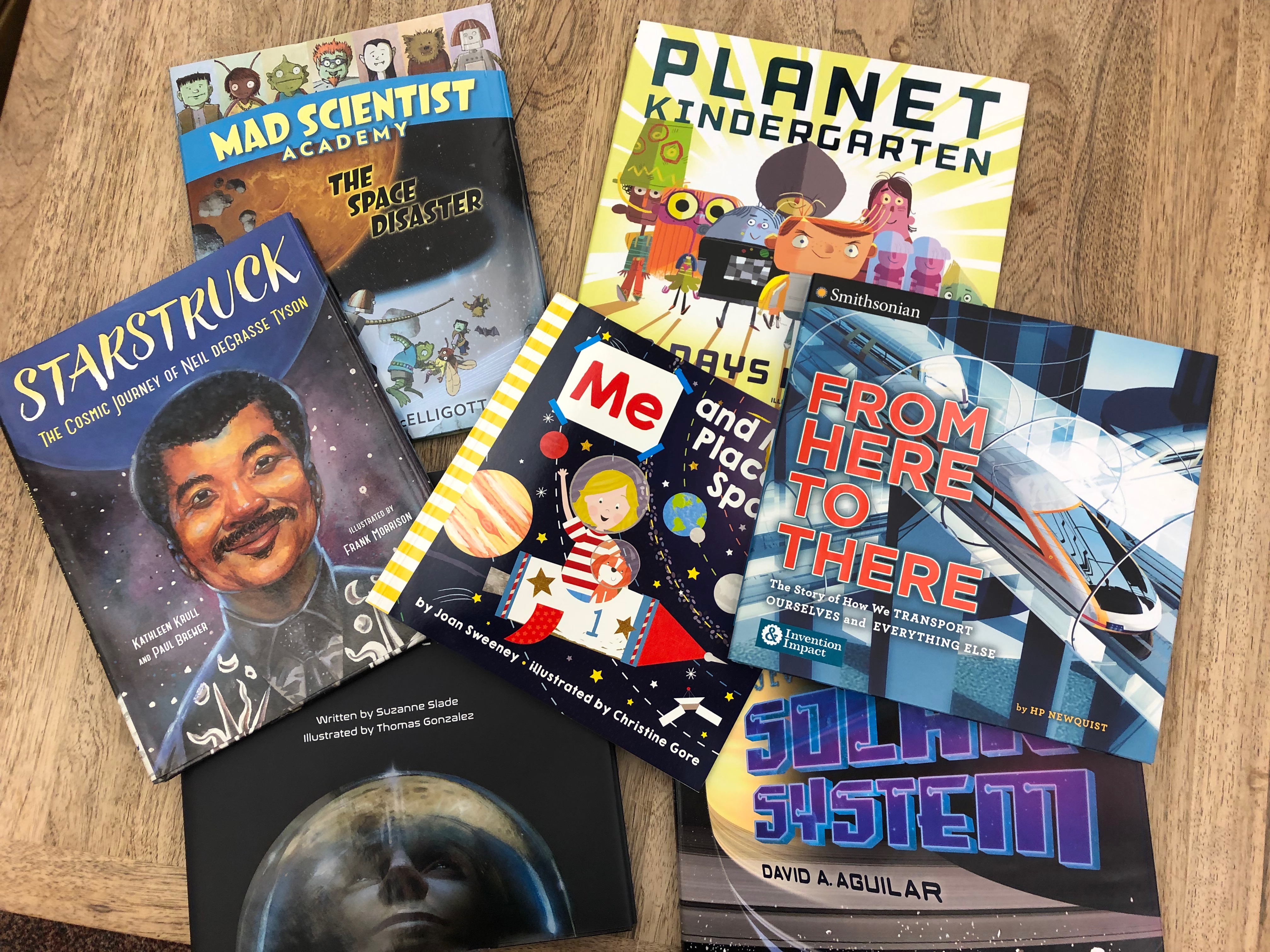 I have two sets of space books (they're mostly different titles but there are 2 duplicate titles in each set) to give away to 2 libraries. All you have to do is email me directly the artists and themes for ALL future CSLP programs that have been announced. Deadline is today 5 PM. I'll pull 2 names from the Name Picker Ninja and send the 2 winning libraries one of the sets of books. Good luck!