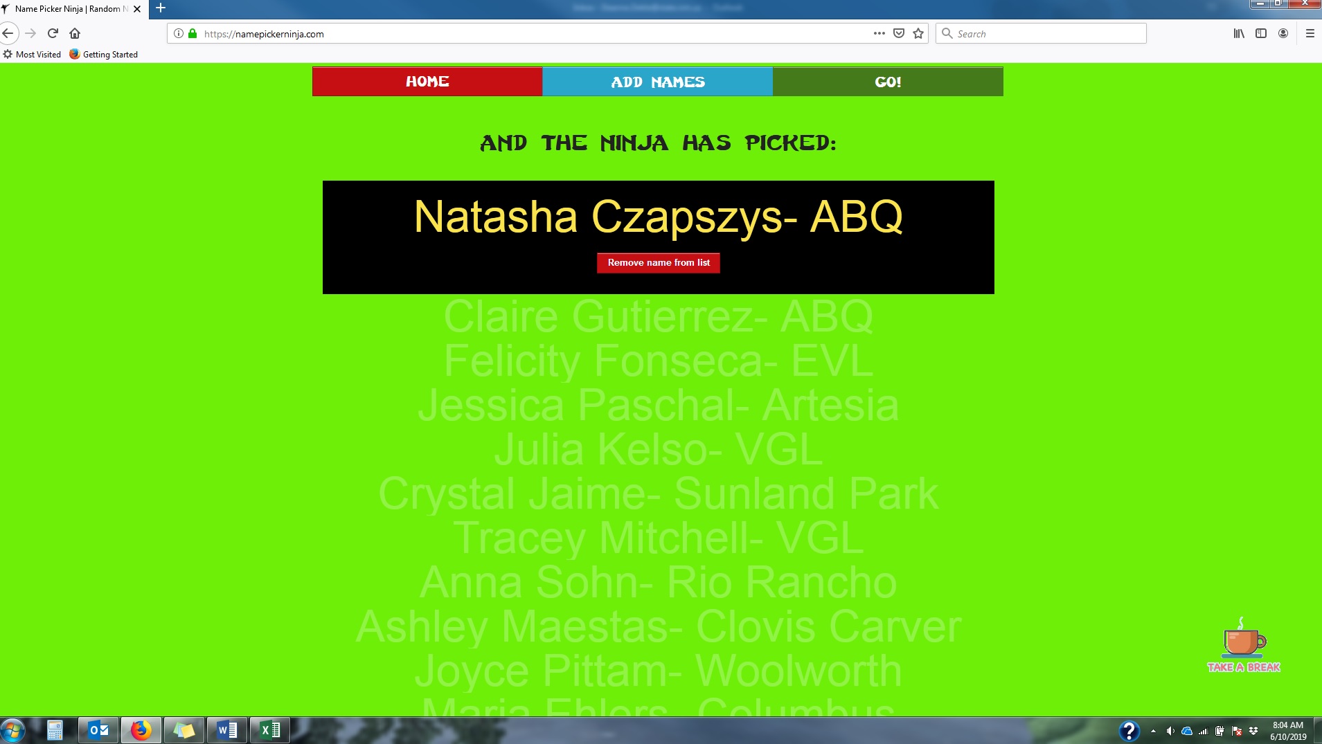 Mon Jun 10 08:08:04 MDT 2019